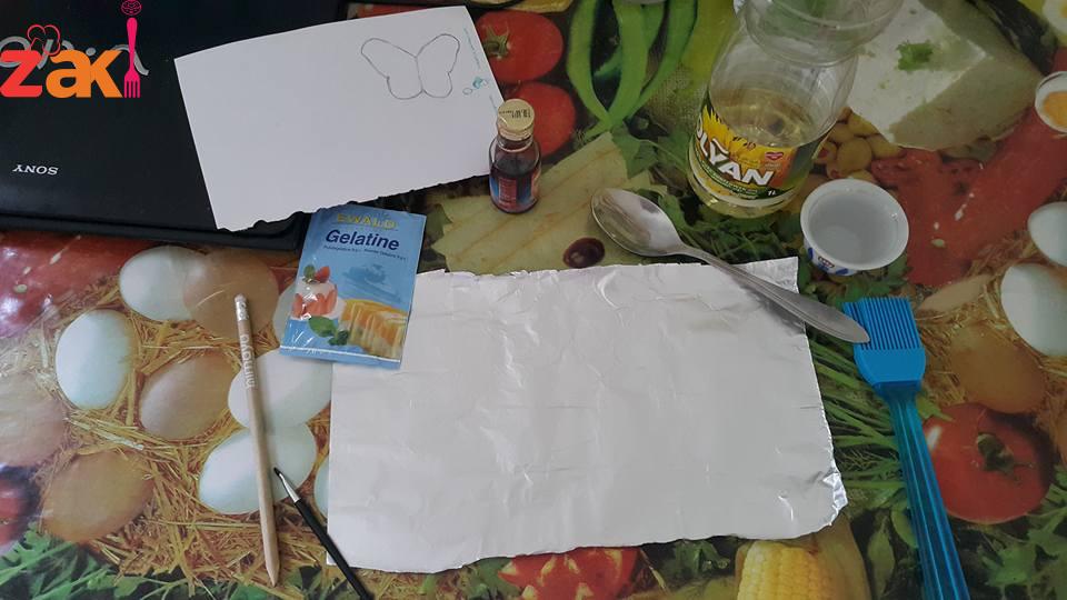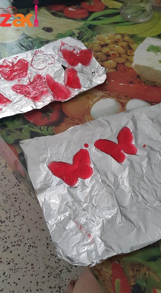 نجيب سلفون نرسم علية الفراشات وبعدها ندهنا بزيت وبفرشاة نعبي السلفون
