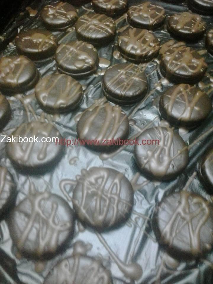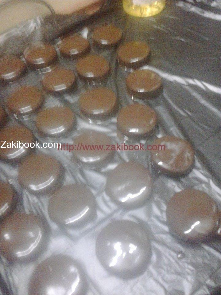 – منجهز قالب شوكولا على حمام بخار طبعآ يضاف لكل قالب كاس صغير زيت, ومنغطس البسكوت بعد ماطبقناه.
