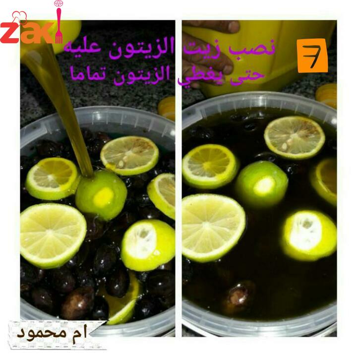 موضح بالصور يوضع الزيتون ونغطيه بالملح ويترك مده اسبوع او اكتر ……