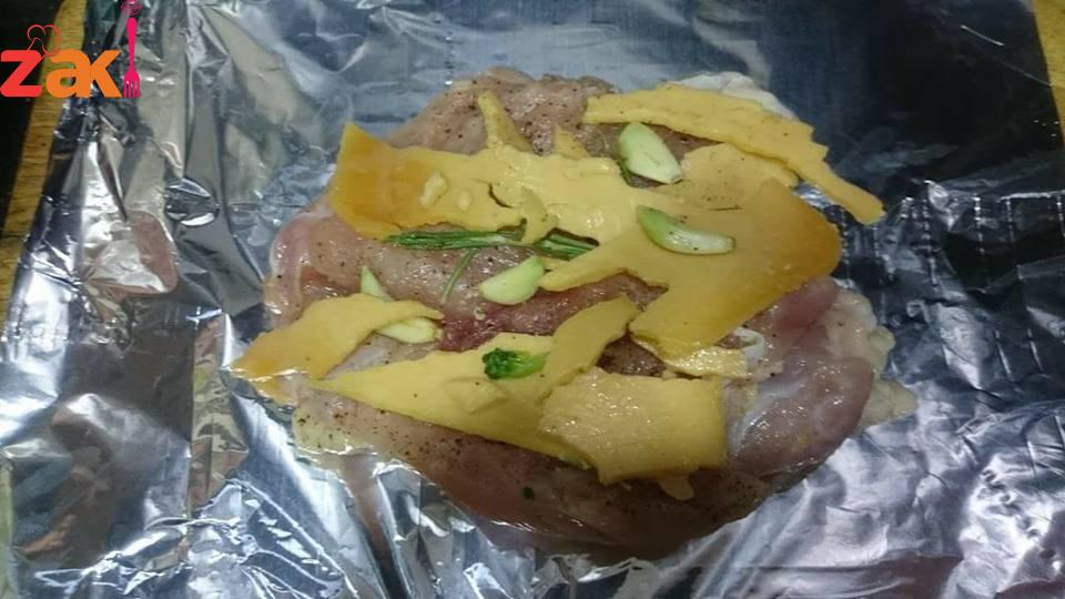 بتاخدي شريحه صدر وتفتحيها تشيلي العضم وبعدين ترشي عليه ملح وفلفل اسود وتحطي فصوص ثوم وكام ورقه سبانخ
