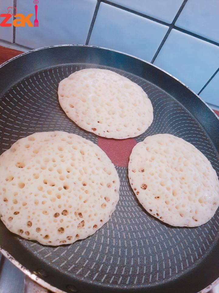 بنخلط المواد الجافه وبعدين المي لتتكون عجينه رخوه وبنخفقن منيح بنخمرهن شي نص ساعه وكل 10 دقايق بنحركهن