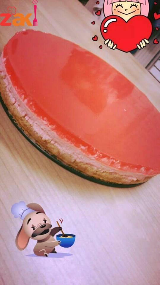 وخفقت لحال 250 غرام جبنه كيري وممكن فيلادلفيا مع 250 غرام جبنة مسكربون ليمتزحوا بس وبعدها ضفت الجلو المذاب بكون برد اكيد وبنصير نضيف شوي شوي من مزيج الجبنه ونحطا فوق الكريمه المخفوقه ونحرك يدوي شوي شوي عشان ماتهبط الكريمه عنا لتنتهي الكميه ويمتزجوا سوا