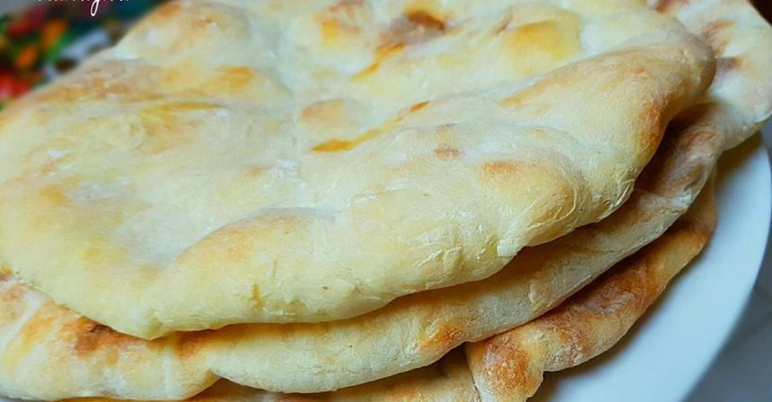 معلقة سكر ومعلقة خميرة بندوبهم بمية دافية وبنتركها عشر دقايق لحتى تفور وبنحطهم عالطحين وبنضيف مية حسب الحاحة لحتى تصير عنا عجينة طرية ودبقة شوي بنحط شوية زيت وبنتركها تتخمر ويتضاعف حجمها ..بنقطعها كرات حسب الحجم اللي بدنا ياه وبنتركها كمان مرة ترتاح بنولع الفرن على اعلى حرارة وبنحط في صينية حجار ملسا نضيفة ومغسولة كويس بنرق العجين وبنتركو برضو يرتاح وبناخد الرغيف شوي شوي بنحطو فوق الحجار ولازم تكون الحجار سخنة كتير قبل ما نحط العجين …بنستناها لتبلش تنفخ وتتحمر من تحت بنولع من فوق نحمرها شوي انا بولع الفرن من تحت ومن فوق مع بعض ..
