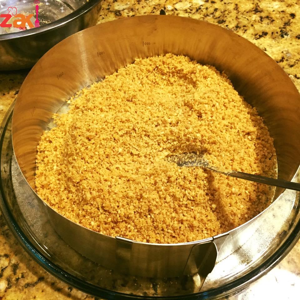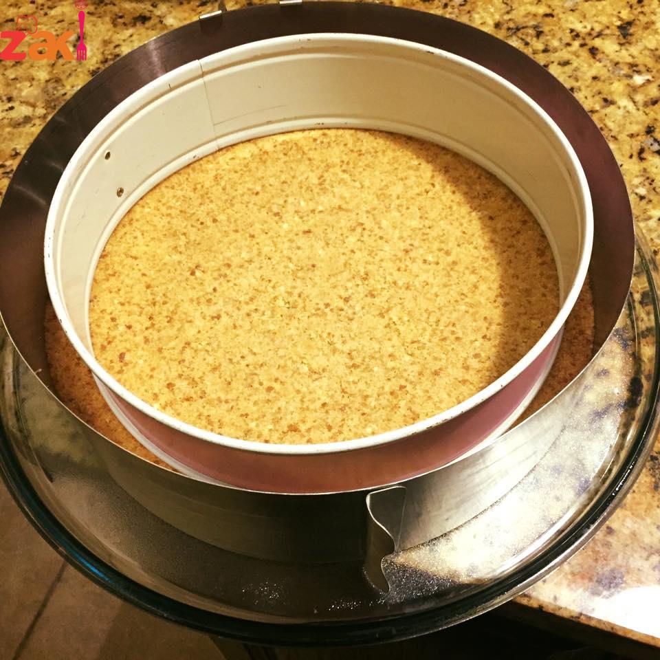 اول طبقه اي نوع كيك شوكلا شربي اي نوع عصير في صينية التشيز أو أي نوع بسكويت مطحون خمس أكياس مع 400 غرام زبدة يتم خلطهم مع بعض ورصهم في صينية التشيز كيك