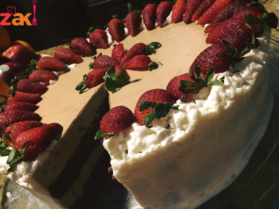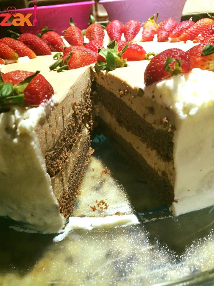 ويتم وضع الطبقه الثانيه من الكيك واخر شي وضع النصف الثاني من الموس