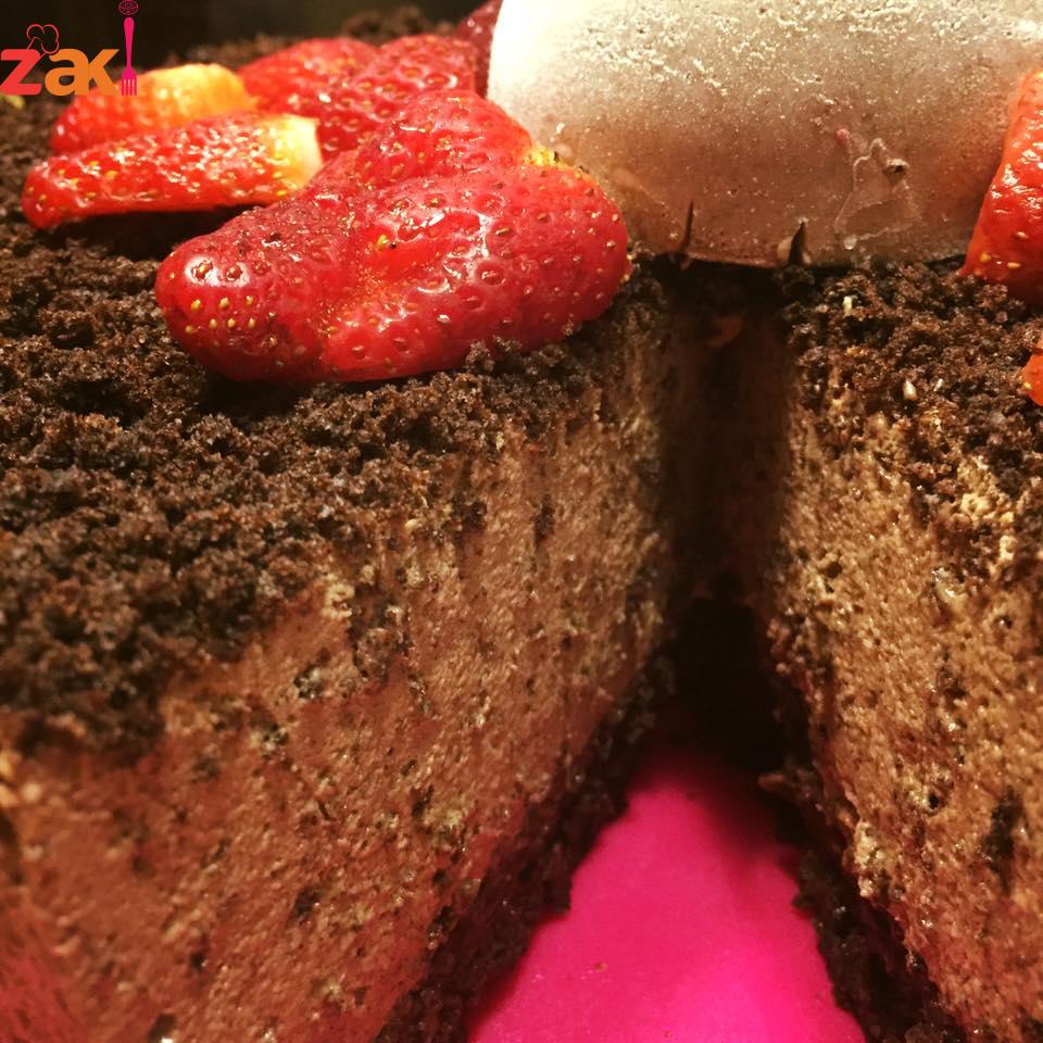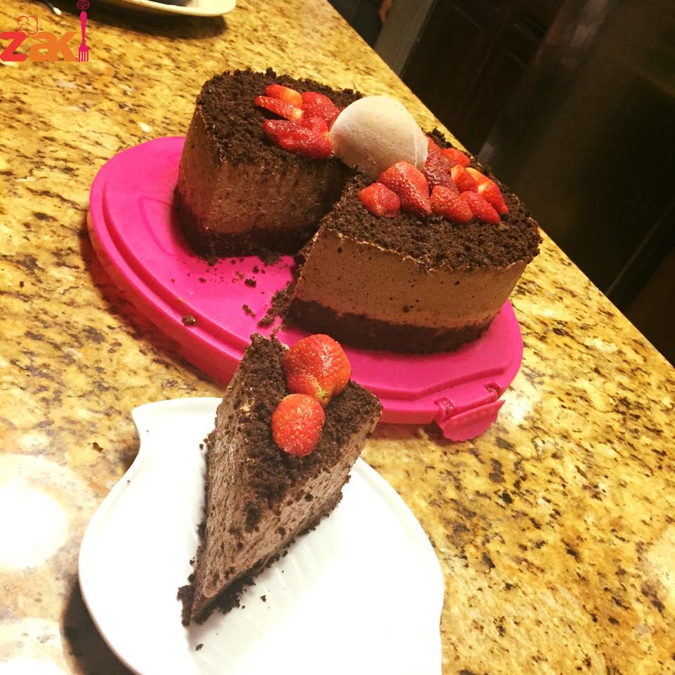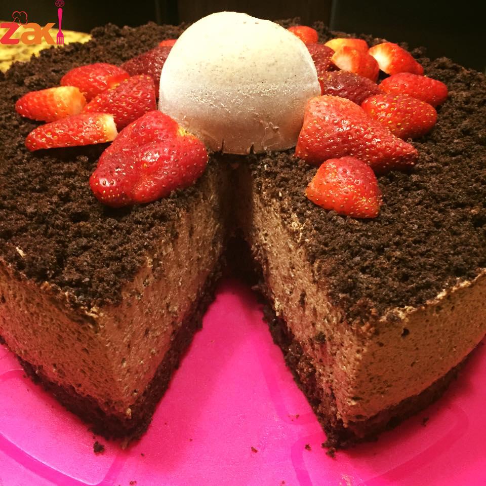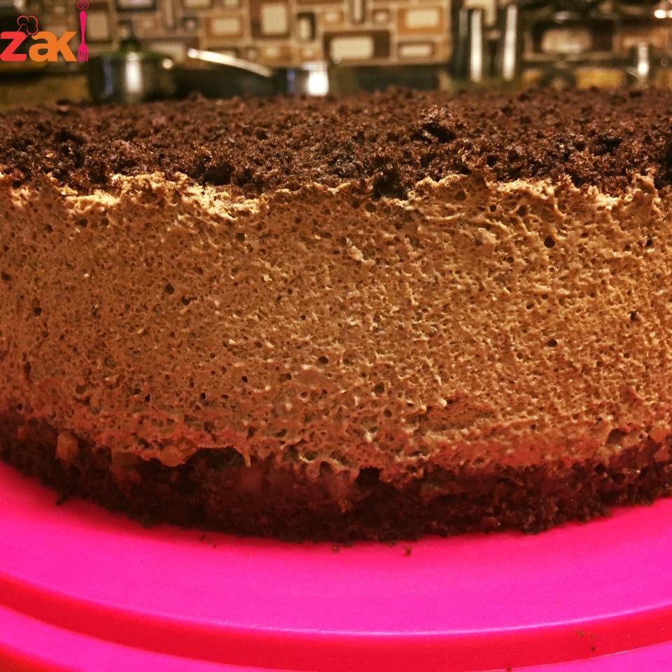 اولا يتم خفق الكريمه في كوب ماء بارد جدا حتى يتضاعف الحجم ويتم اضافة جميع المقادير مع استمرار الخفق حتى يصبح المزيج سلس وملس وتضاف الشوكلا المدوبه واخر شي يتم وضع الجلاتين ويخفق حيداً وفي ضَل عني كيك الشوكلا فتفتو وضفتو على خليط الموس وحركتوا في معلقه السيلكون وحركته شوي ثم درت خليط الموس على الكيك واخر شي كيك مفتفت على الوجه الموس وزا بتحبي تزين بالفراوله اوي اي شي ويتم وضع الكيك وفيالثلاجه ثلاث او اربع ساعات