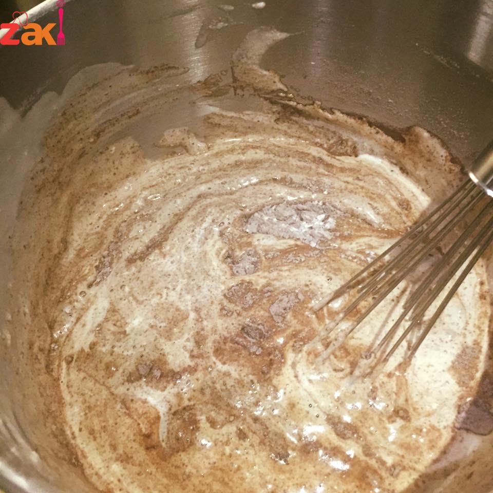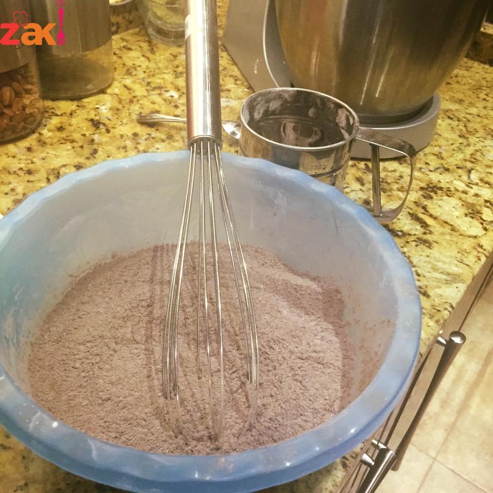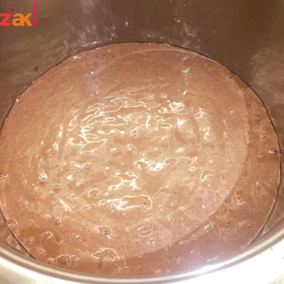 ٦ بيضات / ١كاسة طحين/١ كاسة ماء دافئ / نصف كاسة زيت نباتي/ رشة ملح/١ كاسة سكر /٢ معلقة فانيلا /٢ معلقة بكنج باودر/ ٢ معلقة نشاء / معلقة خل/ ٤ معالق كاكاو