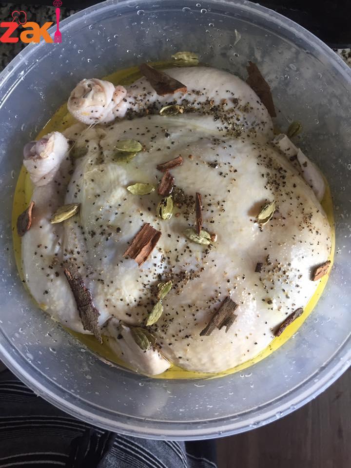 بنقعها من قبل بيوم وبس بدي احشيها برجع بغسلها من جوى وبره وبعمل الحشوه على جنب وبحشيها من جواتها وتحت الجلد من عند الفخاد و الرقبه وبخيطها وبربطها