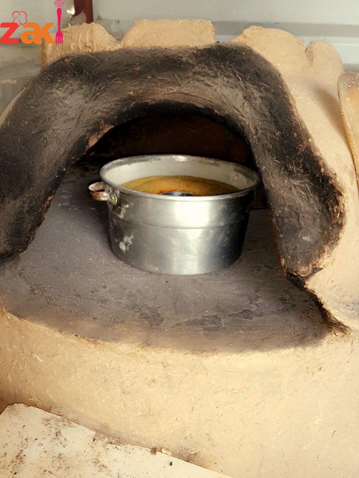 نضع خليط الكيك في قالب الكيك وخبزته في فرن الطينة, وممكن تعمليها على الفرن العادي.