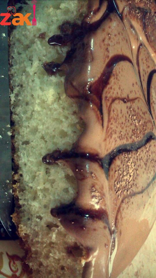 علبة قشطه مع معلقة زبده و3 حبات جالكسي ومعلقة كاكاو بحمام مائي أو بالمايكرويف بس تبرد الكيكه بندهننها بالصوص