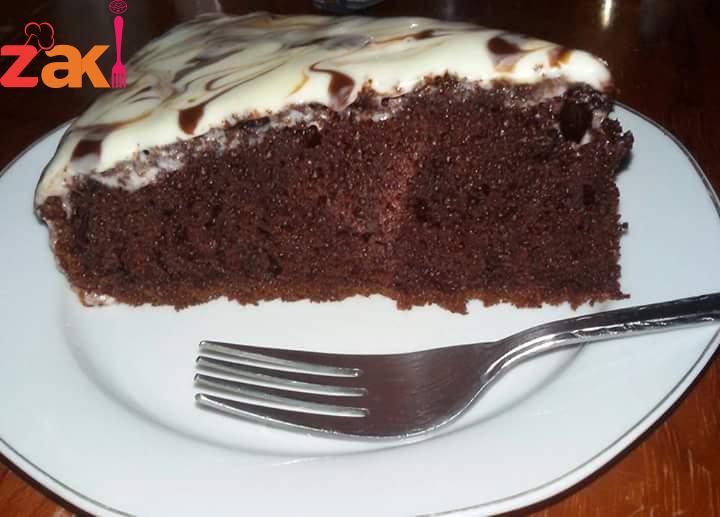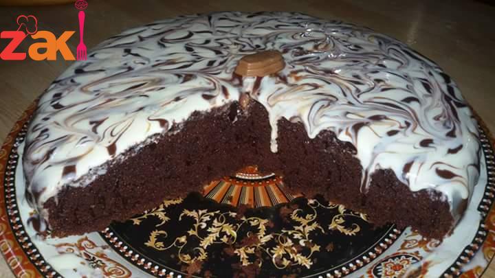 4 بيضات مع ملعقة فانيلا وملعقة خل صغيرة بنخفقهم جيداً وبنحط كاسة سكر وكاسة زيت و3 ملاعقة حليب بودرة وكاسة ماء دافئ وكاسة ماء عادية وبنخفق وبندير عليهم كاستين وربع طحين مع ثلاث أرباع الكاسة كاكاو مع ملعقة كبيرة باكينج باودر وربع ملعقة كربونة, وعلى الفرن لتستوي وبس تبرد بضع عليها الصوص.