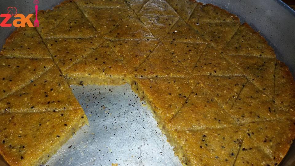 كاستين سميد ونص كاسه طحين ونص كاسة زيت زيتون معلقه كبيره لكل من سمسم قزحه شومر بهارات كعك وبيكنج باودر ورشه ملح بنخلط جميع المواد مع بعض وبنتركهم…وع النار بنحط معلقة يانسون حب مع كاسه مي بنفس اللي عيرنا فيها وبنغليهم ع النار وبس يدفى بنعجن في وبندهن صينيه زيت زيتون وبنمد العجينه وبنقطعها وبندخلها الفرن بس يتحمرو الأطراف وبنحمر الوجه وبنسقيها قطر