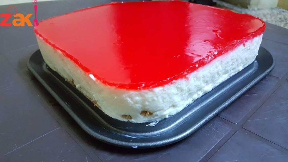 طبقه الاولى بسكوت مغطس بالخليب طبقتين تاني طبقه بنعمل مهلبيه تقيله وبعدها بنحطها بالخلاط ونحط معها 3 حبات جبنه وباكيت قشطه وباكيت كريمه بودرة وبنخلطهم سوا وبنرجعهم بالطنجرة ع نار وبنحرك بسرعه بس يجمد شوي بنطفي نار وبعدها ينحطهم ع البسكوت وبنحطهم بتلاجه نص ساعه طبقه الثالثه باكيت جلي فراوله بنحطه ع نار مع كاسة ميه مغليه ومعلقتين نشا وبنحركهم شوي وبعدها بنحطهم ع الطبقه التانيه وبنتركهم بتلاجه 6 ساعات وصحه