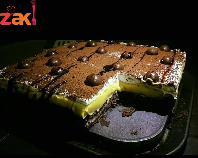 ظرفين دريم ويب علبه قشطه كاسة حليب زغيرة كلهم بالخلاط لحد ما تكثف وبعدها بتحطها ع الطبقه التانيه وبرتشي الوجه كاكاو وحطيها بتلاجه ساعتين