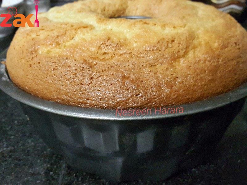 ثم نصب الخليط بقالب مدهون حجم متوسط مناسب لحجم الخليط وندخله عفرن محمى مسبقا ونتركها لمدة 40_50 ونختبر الاستوا بعود خشبي ونترك الكيك بعد الاستوا مدة عشر دقايق بالفرن وهو مطفي ثم نتركها تبرد والف هنا ![]()