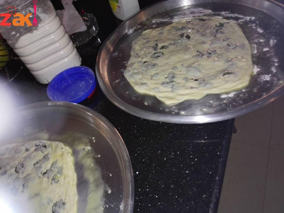 بمد العجينه بالزيت عشان ما تتمزع