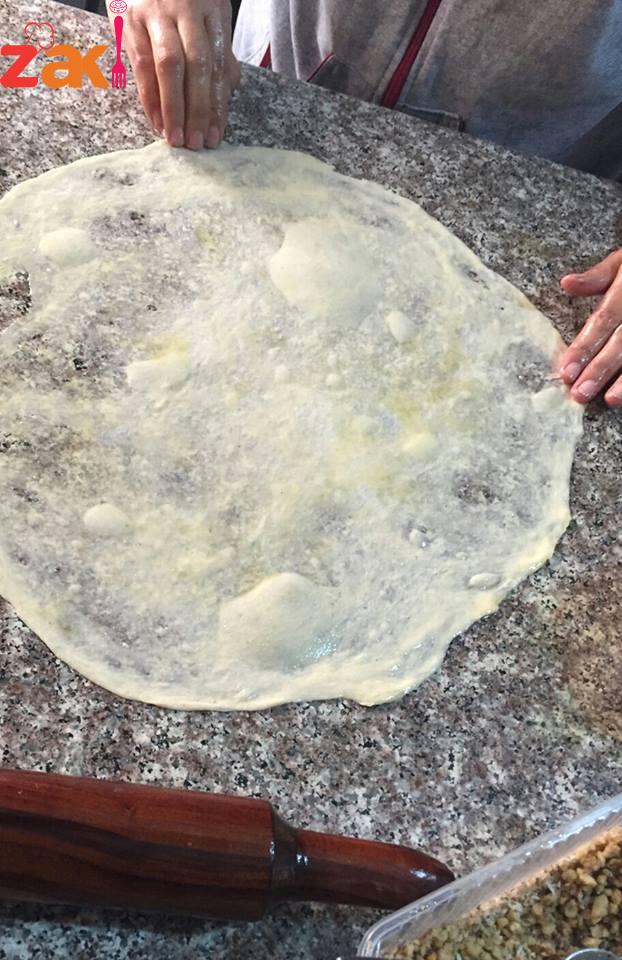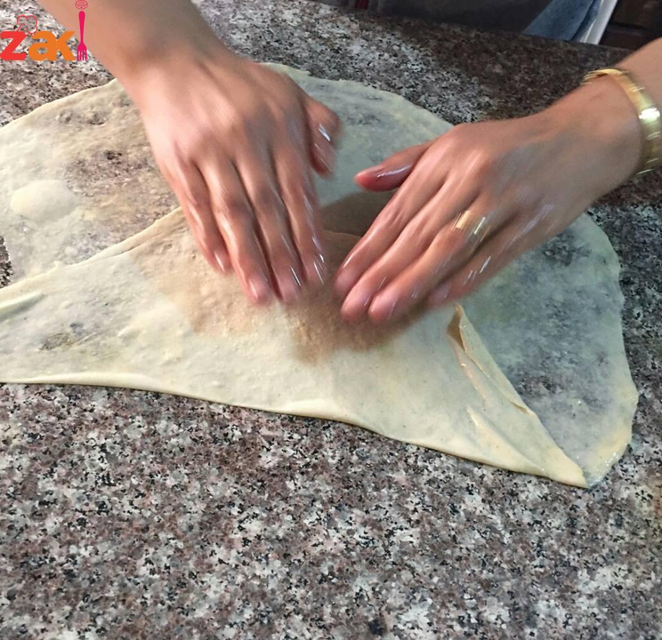 طحين ورشة ملح ومي ولازم العجينه جامده عشان تشديها وتفرديها براحتك وممكن ترقي بزيت او بطحين وبفضل الزيت اسهل