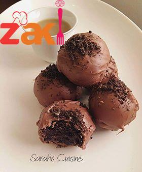 تغطس حبات الاوريو بالشوكولاته المذوبة و تزين بقليل من الاوريو المكسر.