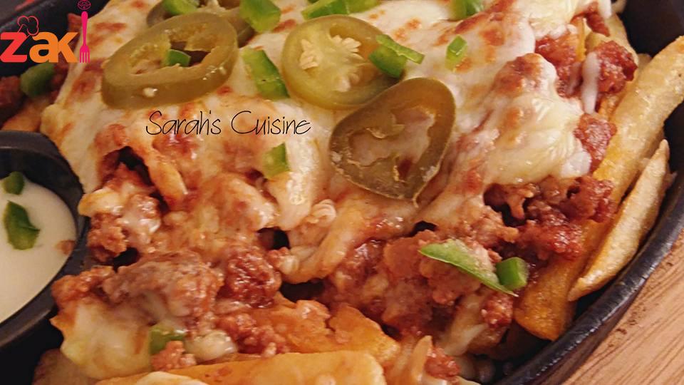 تضاف اللحمه وةالاجبان ع الوجه و توضع بالفرن مده 10 دقايق أو أقل لتذوب الجبنه و تزين بالهالبينو.