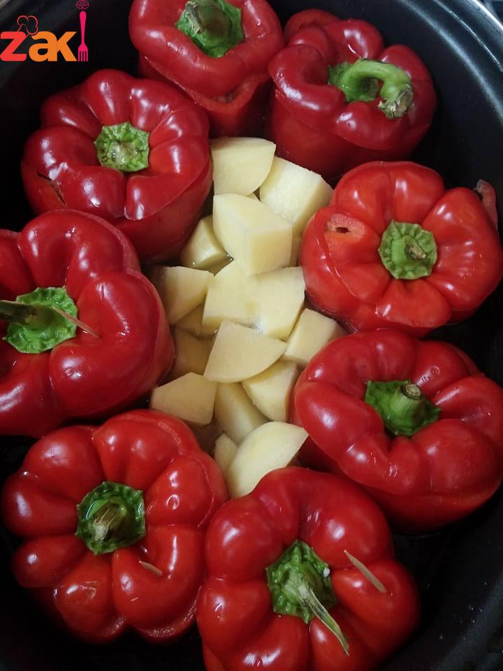 تغسل الفليفله ونقسم القسم العلوي بحيث تصبح مالغطاء لحبة لفليفله .