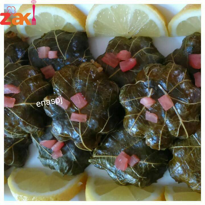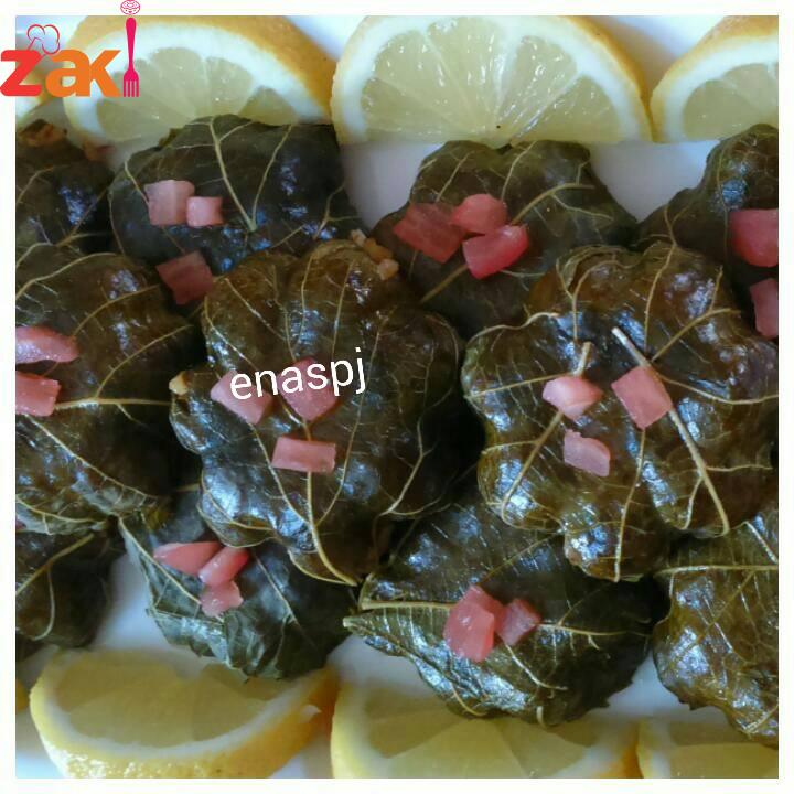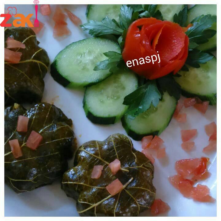 اولا الحشو. خليط كفتة حوالي كوبين معاه كوب رز مغلي على النار دقيقتين بس وتصفية من المية وتحطيه. ملح وبهارات وفلفل أحمر خديت ورق العنب الحجم الكبير وحطيته في قالب سليكون على شكل وردة وحطيت الحشو في الوسط بعدين غطيت الأطراف وطبخته على البخار وهو في القالب