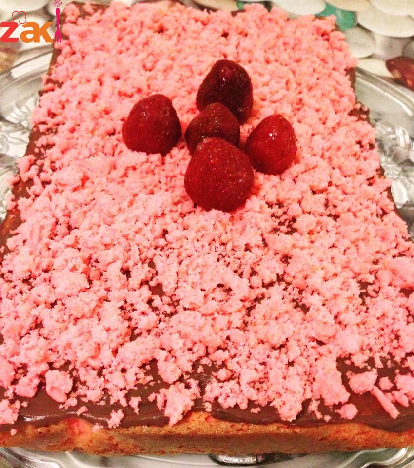 ثم نقوم بمسح وجه الكيك بالكريم بالتسواي نعمل فتات مما تبقى من الكيك ونرشه على سطح الكيك وتحفظ بالبراد لحين تقديمها .