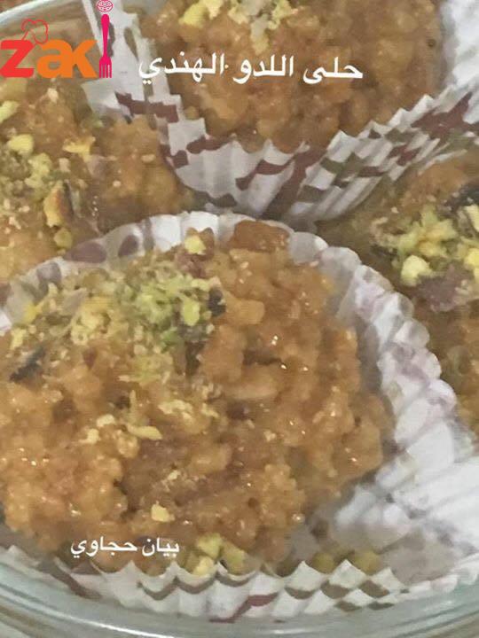 نحضر ملعقة مخرمة ونصب العجين بالزيت الحار حتى تأخذ لون ذهبي وتصبح كرات صغيرة مقرمشة تخلط مع اللوز المقطع طولي المحمص والزبيب ويضاف القطر السميك توضع كمية باليد وتعصر باليد جيدا حتى تتماسك صحة وهنا