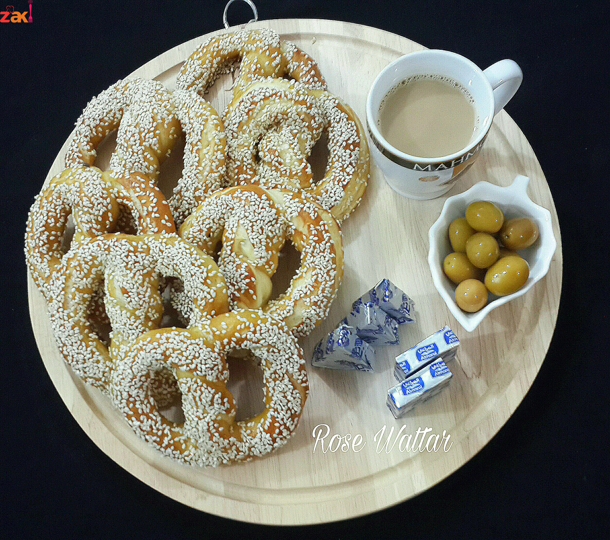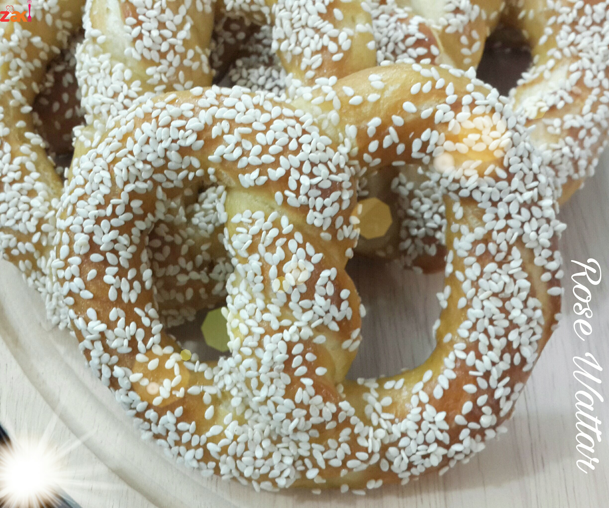 تخلط المواد الجافه معا ويضاف الزبده وبعدها الحليب وتعجن وتخمر لمده ساعه وبعدها تفرد وتشكل حسب الرغبه (في قدر نضع 6 كوب ماء يغلي ويضاف له 3 ملاعق كبيره بيكاربونات الصودا هذه الخطوه مهمه لهذا النوع من الكعك بدها تنفشوا )