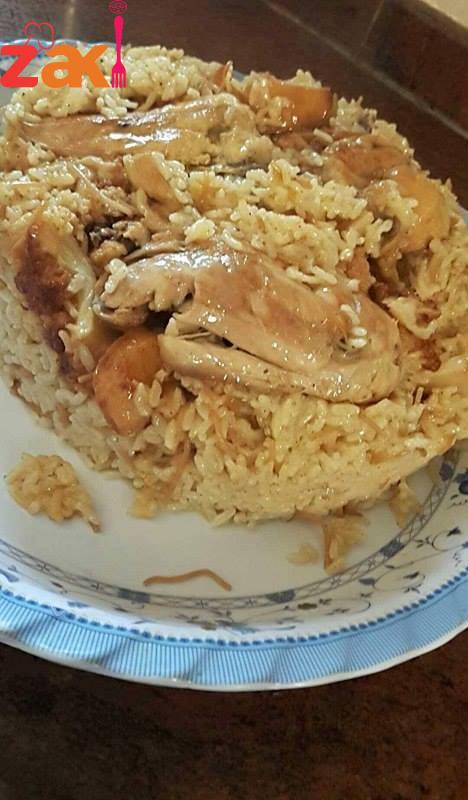 بعدين بتجيبي الطنجرة بتحطي اول شي شوية رز بعدين الجاج بعدين طبقة باذنجان وزهرة بعدين رز