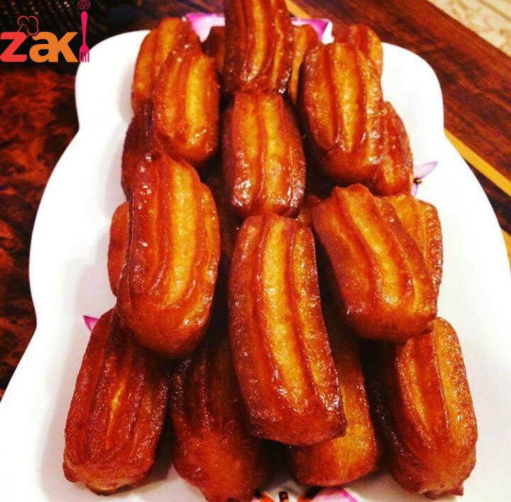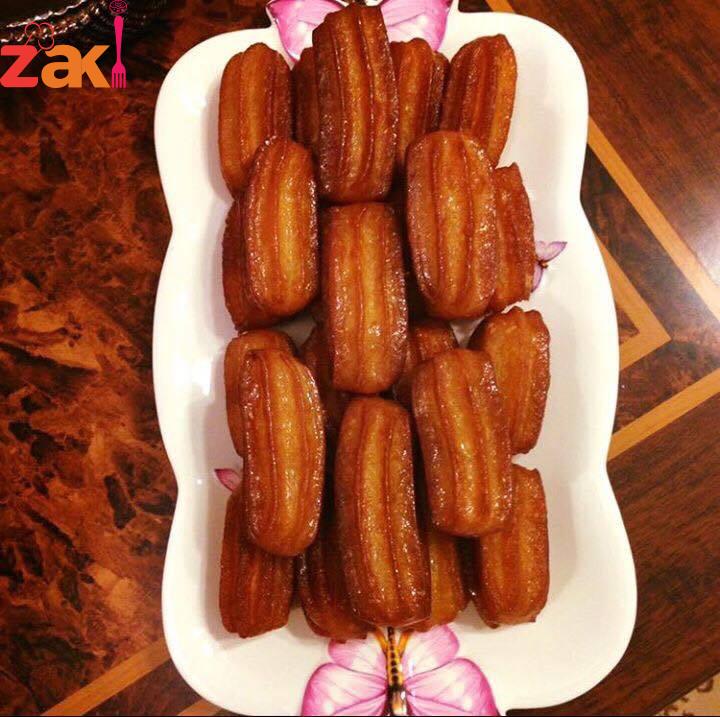 وبقمع الحلواني نضع الخليط ونقلي بزيت درجة حرارته وسط ونقلبها جيدا ثم نضعها بقطر بارد القطر ٢ كوب سكر ١ كوب ماء عصرة حامض ماء ورد وزهر