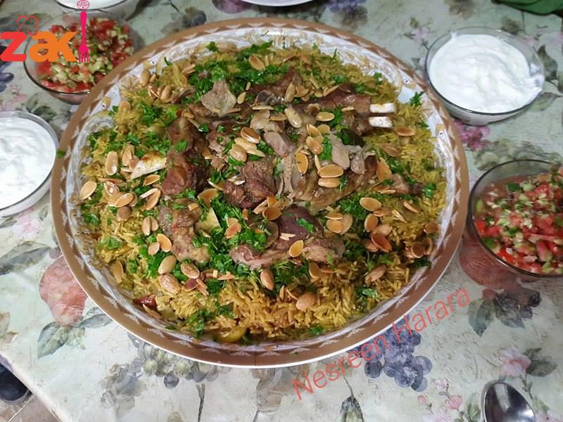 واللمعة هلق بحط اللحمة المسلوقة بصينية و الكاس الي شلناه من المرقة المبهرةبصبه فوق اللحمة ونحطها بالفرن لحتى تاخد لون وتتنكه وبنصب الرز وفوقه اللحمة وبنزين باللوز وشوية بقدونس مفروم وراح يطلعلك اطيب قدرة بالف هنا عقلبكم