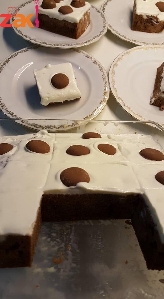 ونضيف الحليب والزبدة بالتدريج والكاكاو وثم الطحين وبيكنج بودر حتى يتجانس وعلى الفرن 40 دقيقة 180 درجة حرارة الفرن