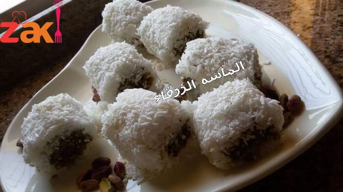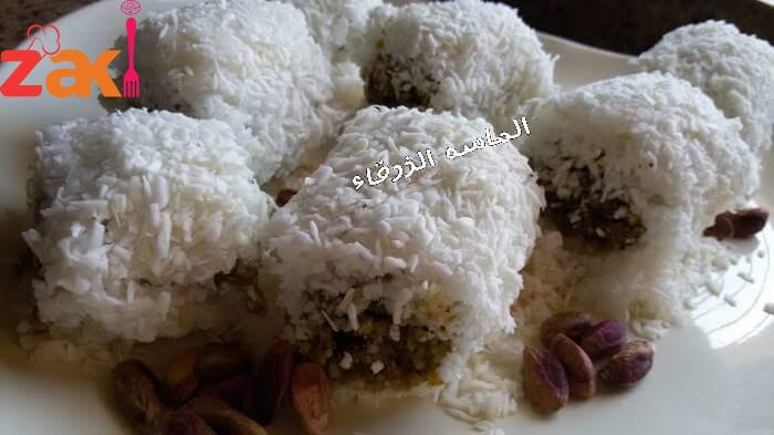 عجينة جوز الهند بحشوة الفستق الحلبي أستحلفكم بالله تشجعوني