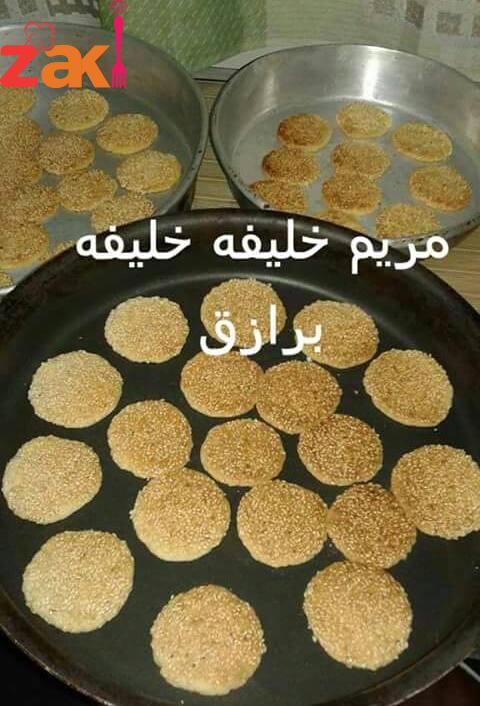 ثم نعملها كرات صغيره متساويه ثم ( نغمسها بخليط السمسم المخلوط بدبس التمر أو القطر) ثم توضع بالصينيه ثم أخبزها بالفرن من 10دقائق الى ربع ساعه وعلى حراره 200/ 220 ولا تنسوني بالدعاء مريم خليفه خليفه