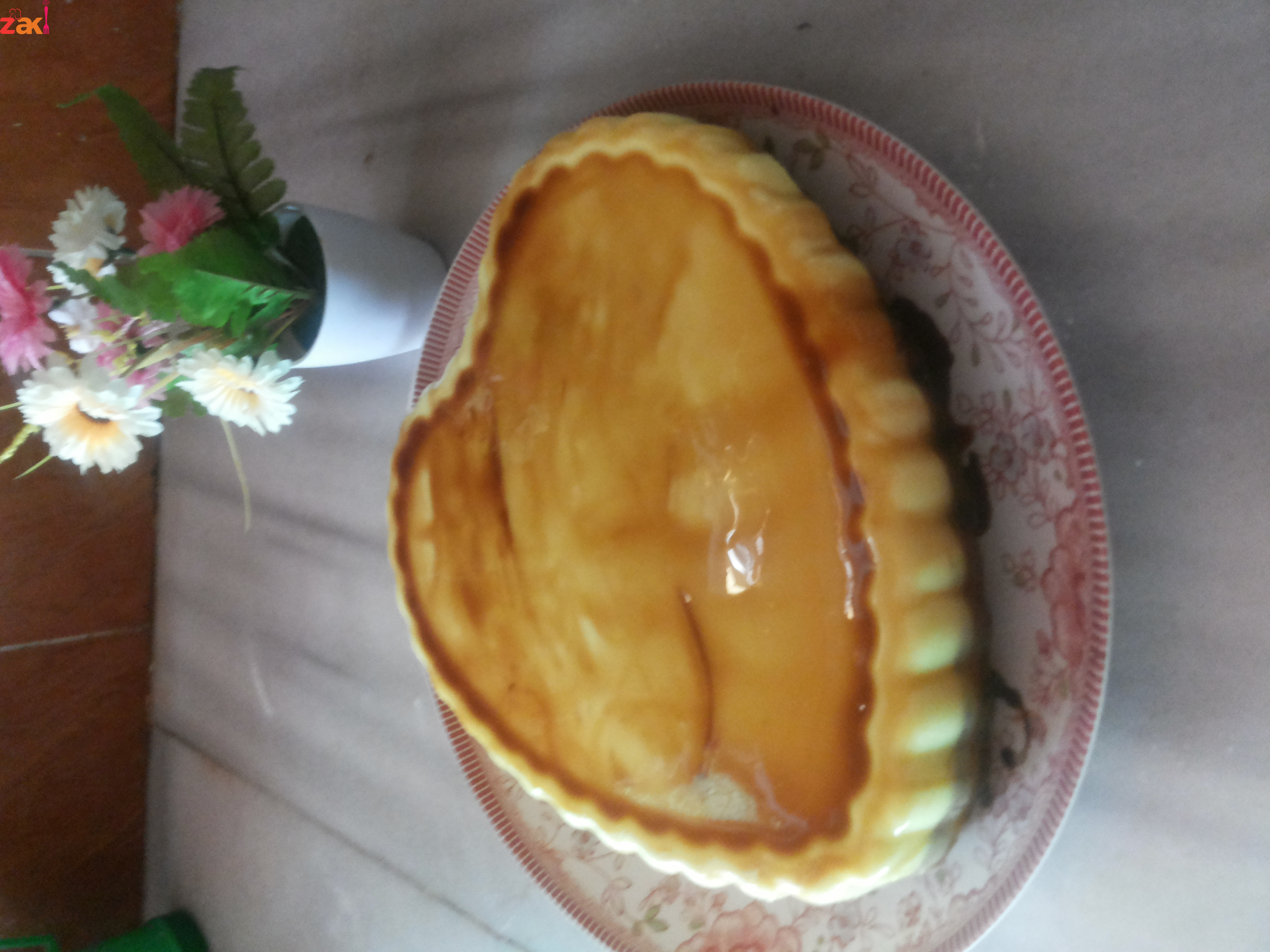 • بعد ما تجهز الكيكه اخرجيها من القالب واغسليه وحطي الكريم كراميل بنفس القالب بس يجمد الخليط حطي فوفقه الكيكه استني شوي بعدين اقلبيها زينيها بصوص الكراميل وهيك بيصير عندك كيكه قدرة قادر بدون غلبه وانتظار وقت طويل لحد ما تاكلي منها انا اخذت معي ساعه بس وصحتيييييين صبايا