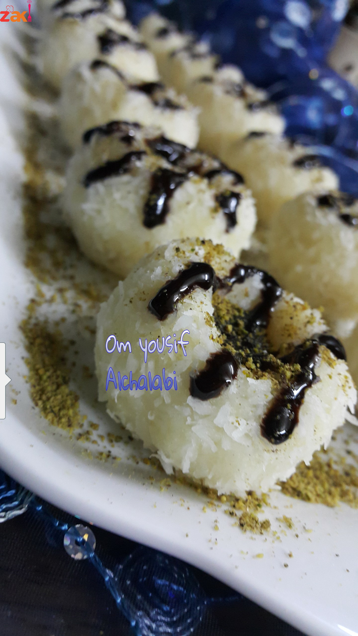 ملاحظة .. ان كانت حلاته قليله يضاف 3 ملاعق كبيرة سكر باودر وتعجن مع المواد قبل ان يكور .