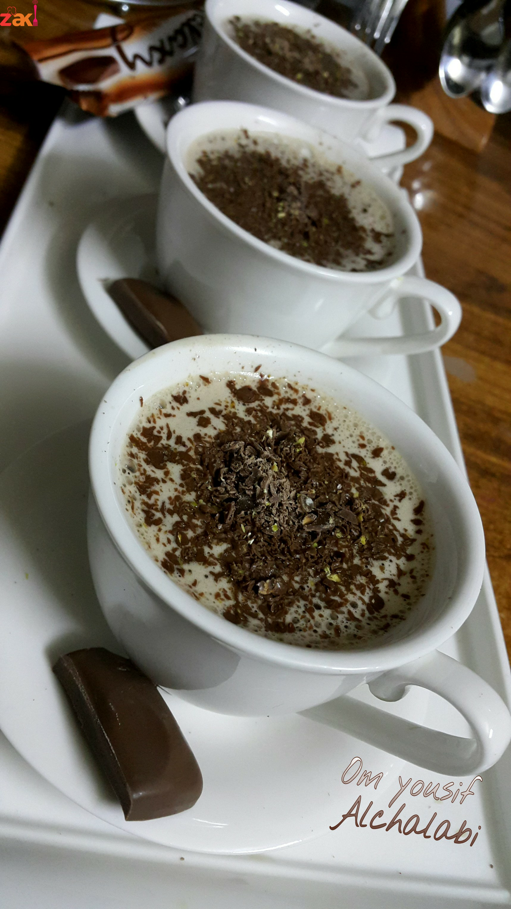 العمل .. على نار هادئة نضع الحليب والسكر والنسكافيا والكاكاو ثم حبة الكلاكسي والسكر وتخلط جيدا الى ان يتجانس الخليط ويفور يصب في الاكواب ويقدم مع برش شكولاته الكلاكسي ويقدم حار ومليووون عافية لاتنسووو ذكر والدتي بالرحمة والدعاااء ام يوسف ..