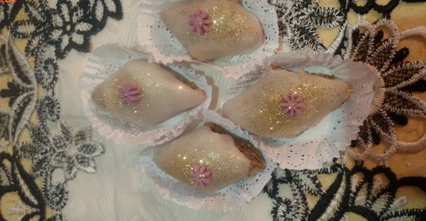 تخلط جميع المقادير حتي الحصول على عجينة طرية نشكها علي شكل اسطوانات ونقطعها تم نلبسها بالشكلا البيضاء وصحتين علي قلوبكم