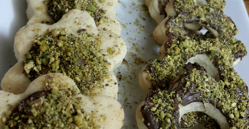 العمل .. نخلط البيض والزبدة ثم السكر الى ان تتجانس نضيف الفانيلا ثم الطحين المنخول مع البيكنك باودر وتعجن باليد الى ان نحصل على عجينة متماسكة ملساء لينة لاتلتصق باليد تفتح بالقطاعات وتشوى ويحمر الوجه قليلا وتخرج وتترك لتبرد تماما ثم تزيين بالنوتلا والفستق الحلبي وتقدم ومليووون عافية لاتنسوو ذكر والدتي بالرحمة والدعاااء ام يوسف ..