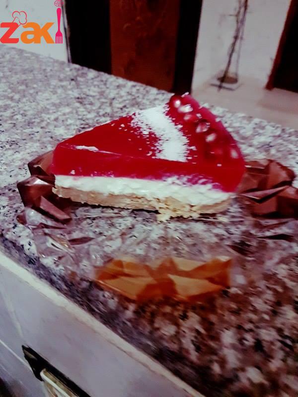 الطبقه الثانيه علبتين زبادي بنكهة الرمان واذا مش متوفر زبادي عادي وكاسة سكر بودره و 4 معالق سكر مطحون ومعلقة فانيلا صغيره بنخفقهم بالخلاط منيح وبنحطهم فوق الطبقه الاولى وعالفرن لمده 10 دقايق بدرجه حراره متوسطه بنولع الشوايه لحتى يجمدو بنطلعهم بنخليهم يبردو