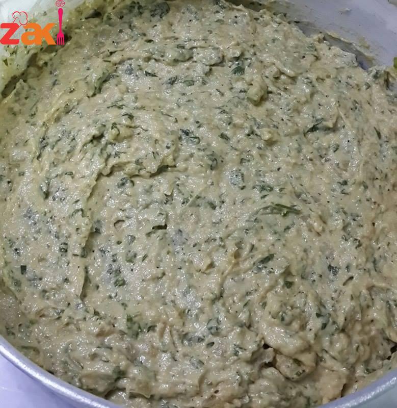 8 بيضات / 5 رووس بصل مفرومين/ منخلط زيت الزيتون مع زيت نباتي بمقدار كوب/ بيضه علشان نخلطها مع اللبن او منحط ملعقتين نشا الموجود/ مكعب ماجي/ طحين اسمر كوب ونصف/ طحين ابيض كوب ونصف / نصف ملعقه صغيره فلفل أسود/ رشة كركم/ كيلوا ونص لبن/ ملح /كوب بقدونس مفروم /