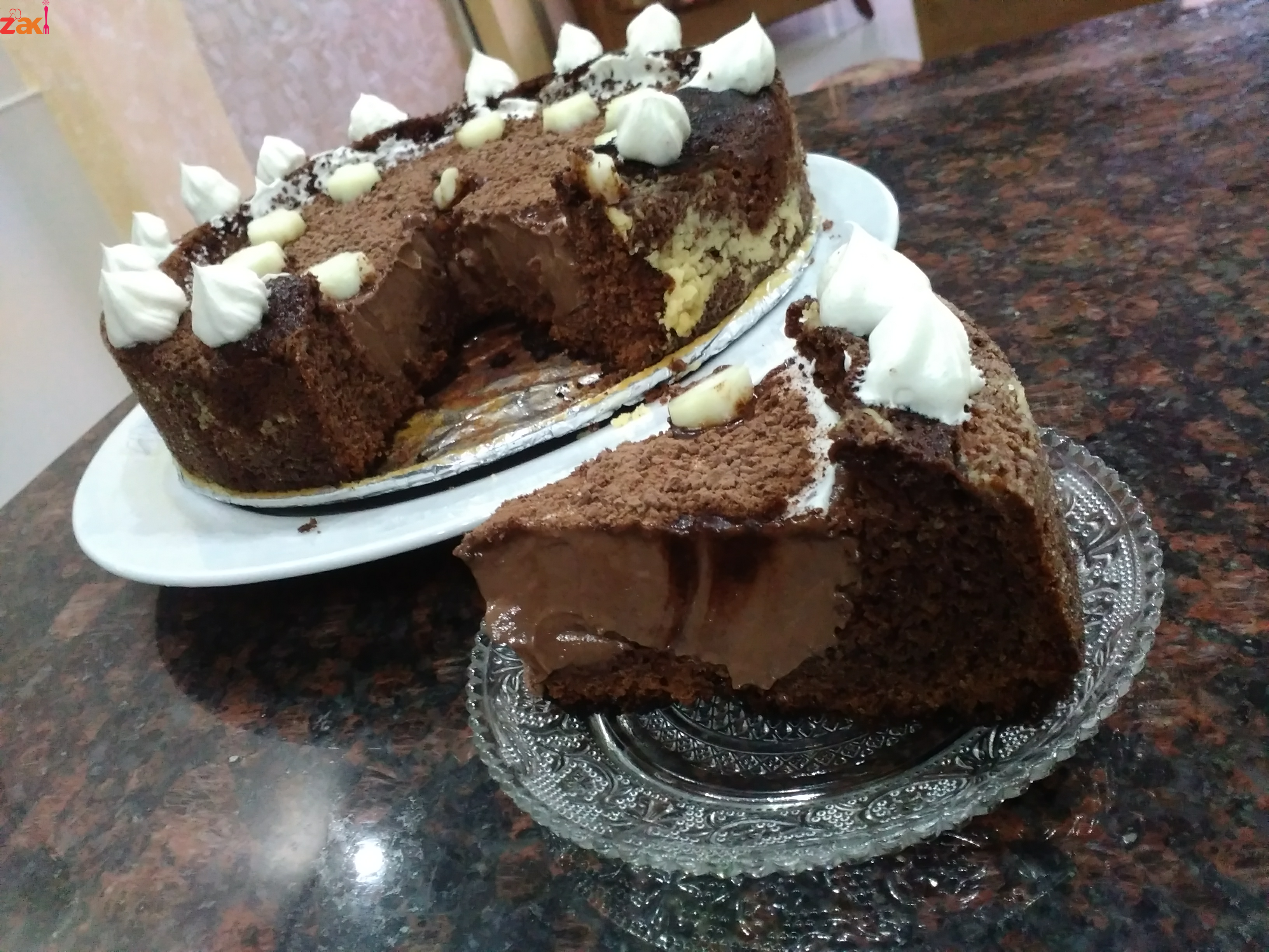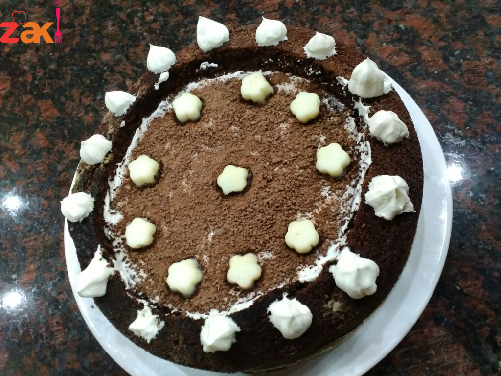 نحضر الكيك كما معتاد تحضيره وعندما يستوي ويبرد جيدا نقوم بتفريغ حشوة الكيك بحيث نبقي القاعدة