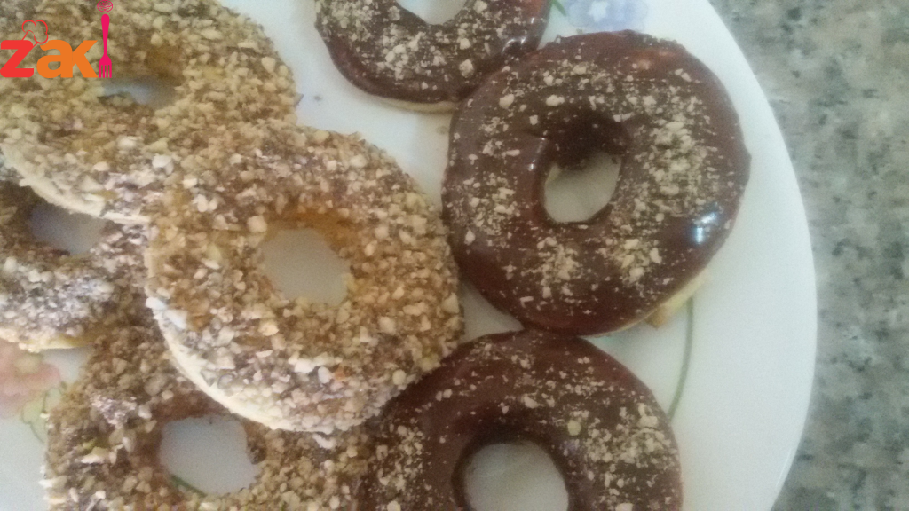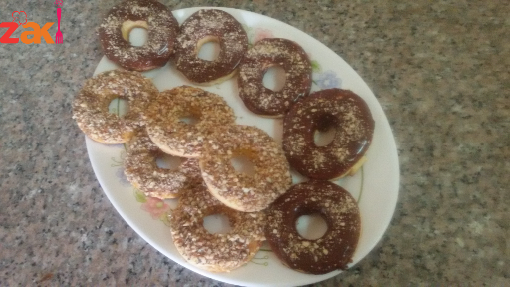 نمزج كل المقادير حتي الحصول على عجينة طرية نبسطها بالشوبك ونقطعها متل الدوناتس وعلي الفرن ولما تستوى انا النصف غمسها في المربي