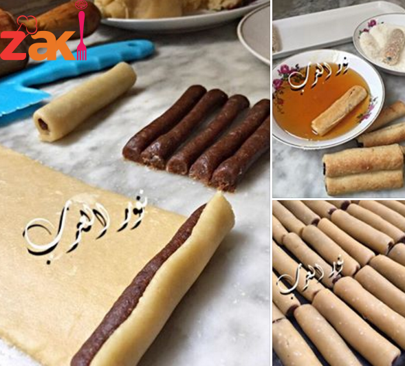 ونحشيها تمر معصد بالزهر والقرفة ونطيبوها في فرن ساخن وبعد تبرد تتغطس في عسل ونغمسوها في جوز الهند (العجين من غير اي خميرة، وممكن نستبدل الزهر بالحليب ،وممكن تحمسي جوز الهند يعطيك ذوق احلى )