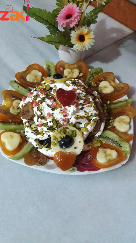 رتبيها بالصحن بعدين رشي هليها قطر وحطي الكريما ورشي المكسرات