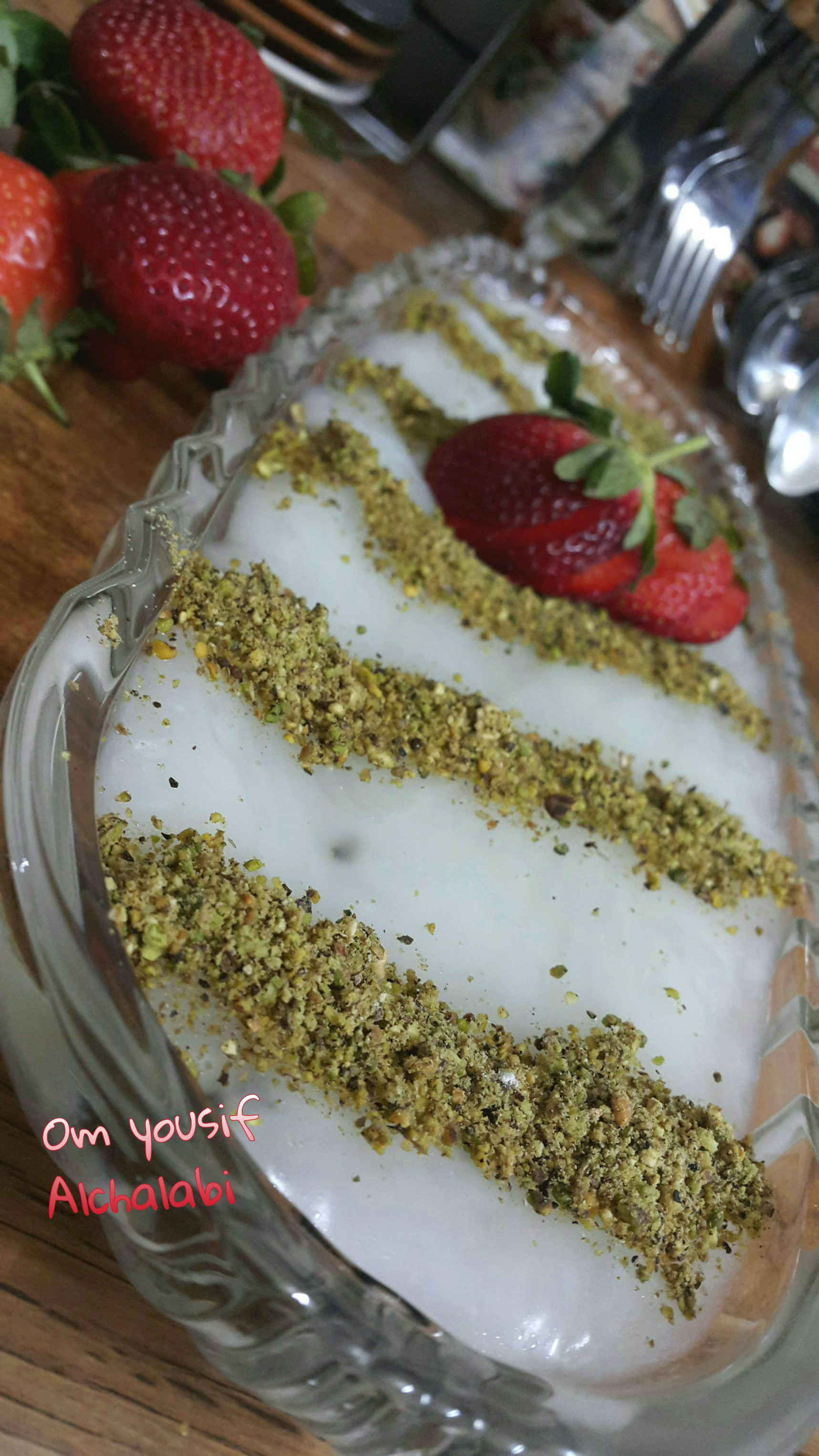 ثم يعاد وضعه على النار مع التحريك المستمر الى ان يثخن المزيج يرفع ويصب في صحون التقديم ويزيين حسب الرغبة ويقدم ومليووون عافية لاتنسووو ذكر والدتي بالرحمة والدعاااء ام يوسف ..
