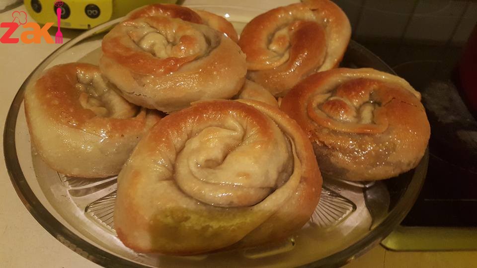 وبعدين لفيها ع بعض متل العكعكه او بتطبقيها مربع وع فرن حامي ع حراره عاليه بتخبزيها بعدين شربيها قطر الحشوه جوز ( عين جمل ) وجوز هند وقرفه القطر كاستين سكر وكاسة مي بس يغلي اتركيه ٥ دقائق بعدين عصرة ليمون ومعلقة ماء زهر صغيره