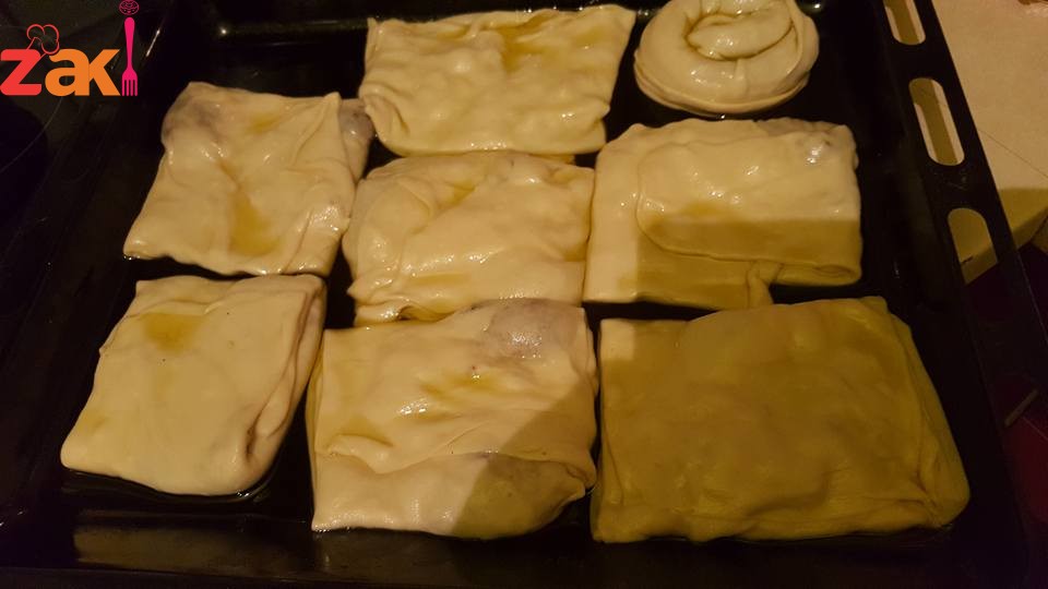 ثم نتركه يرتاح بعد العجن بعدين بتقطعيه كرت وبتريحيه بعدين افرديه بالنشابه ويكون رقيق بتدهني صينيه زيت زيتون بتحطي قطعه العحين المفروده وادهنيها زيت زيتون وحطي الحشوه بعدين انا بتلفيها رول