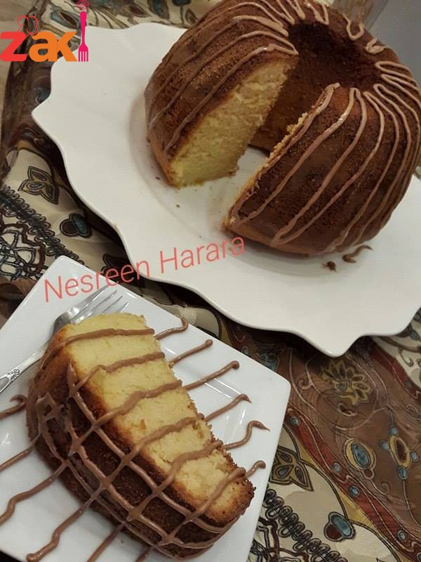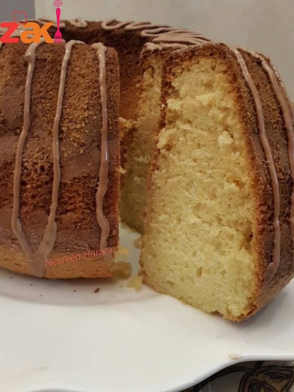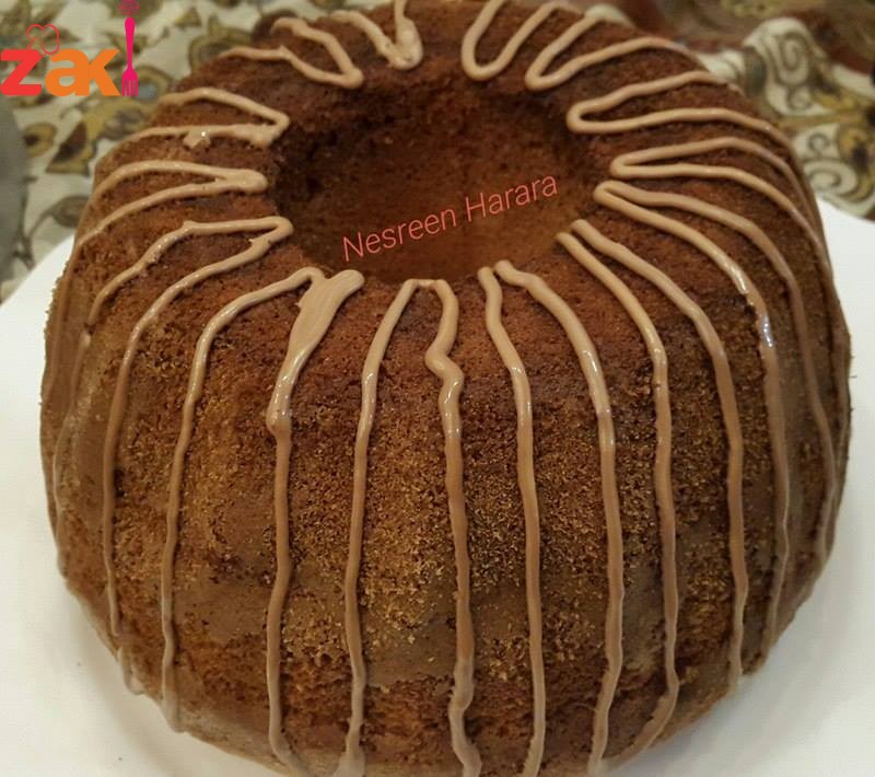 ثم نضيفهم لخليط الكيك ونحركهم جيدا مع الخليط ثم نصب الخليط بقالب مدهون حجم متوسط مناسب لحجم الخليط وندخله عفرن محمى مسبقا ونتركها لمدة 40_50 ونختبر الاستوا بعود خشبي ونترك الكيك بعد الاستوا مدة عشر دقايق بالفرن وهو مطفي ثم نتركها تبرد والف هنا