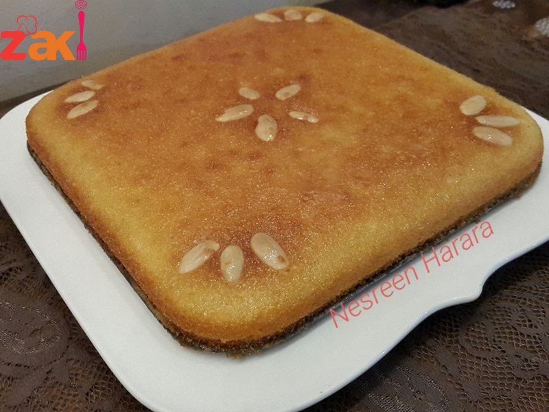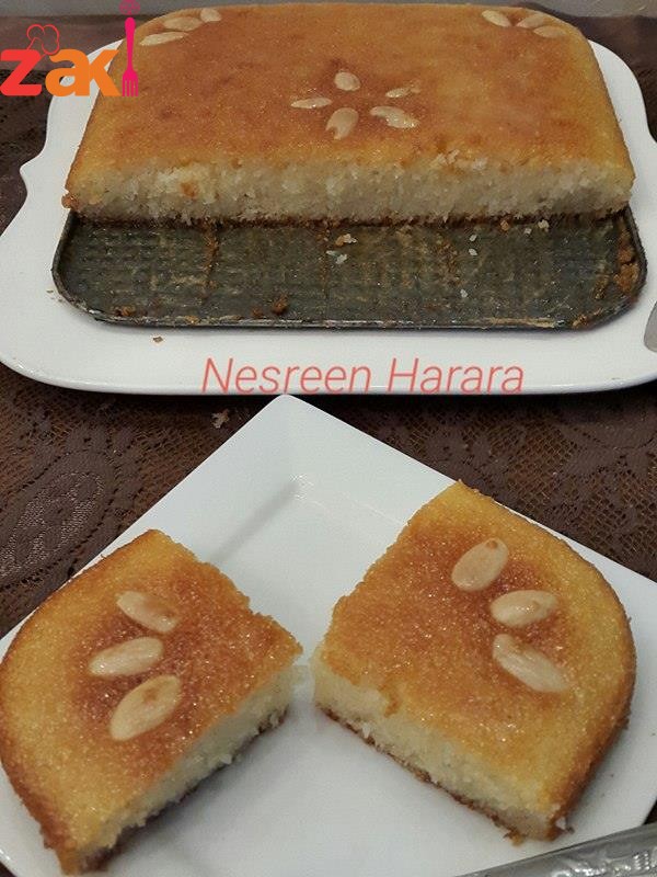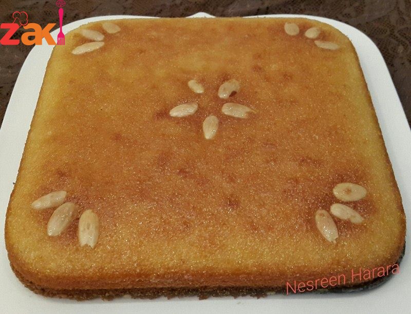 وبعدين نضيف باقي المكونات ونخلط جيدا ونصبها بصينية مدهونة طحينية ونضع التزين بالمكسرات عالوجه ونتركها ترتاح ربع ساعة ونخبزها بفرن محمى مسبقا عنار متوسطة لحد ما تستوى ونحمرها ونضيفلها قطر فاتر كاس ونص سكر مع كاس وربع مي وعصرة ليمونة ومعلقة زبدة اخر شي (اختياري) والف هنا